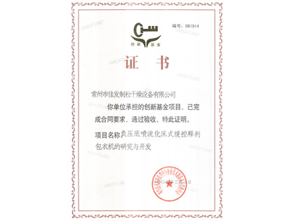 創(chuàng)新基金驗(yàn)收合格證